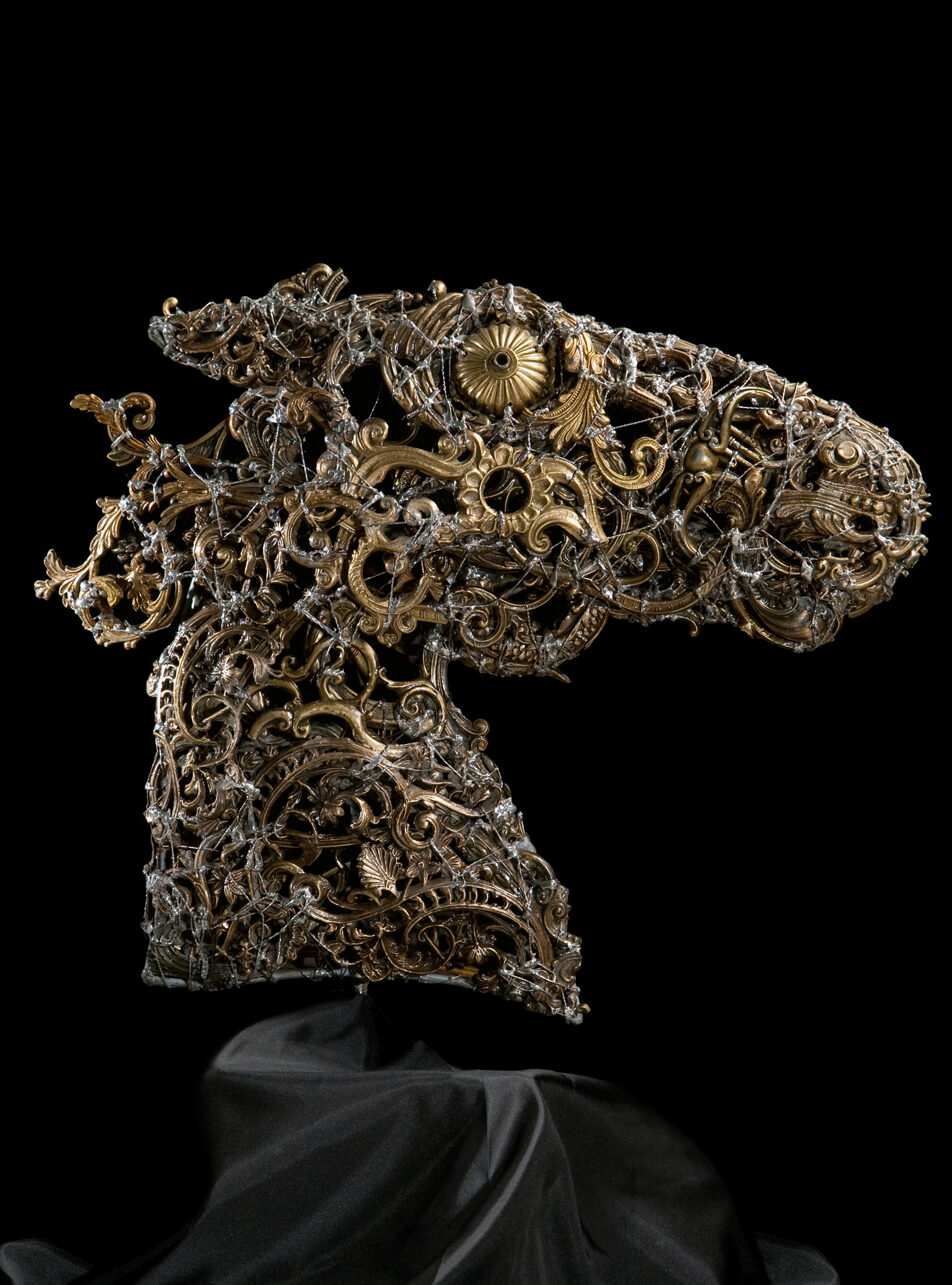 un novello Arcimboldo alla rovescia; i rifiuti, gli scarti, gli oggetti che noi gettiamo via perché non più uti-